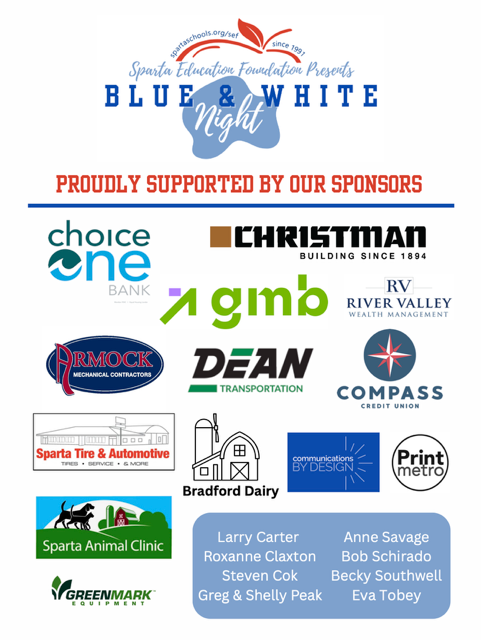 WOW! We are absolutely thrilled to announce that the Sparta Education Foundation's Blue & White Night, held on November 6, 2025, raised an incredible $36,800! 🥳